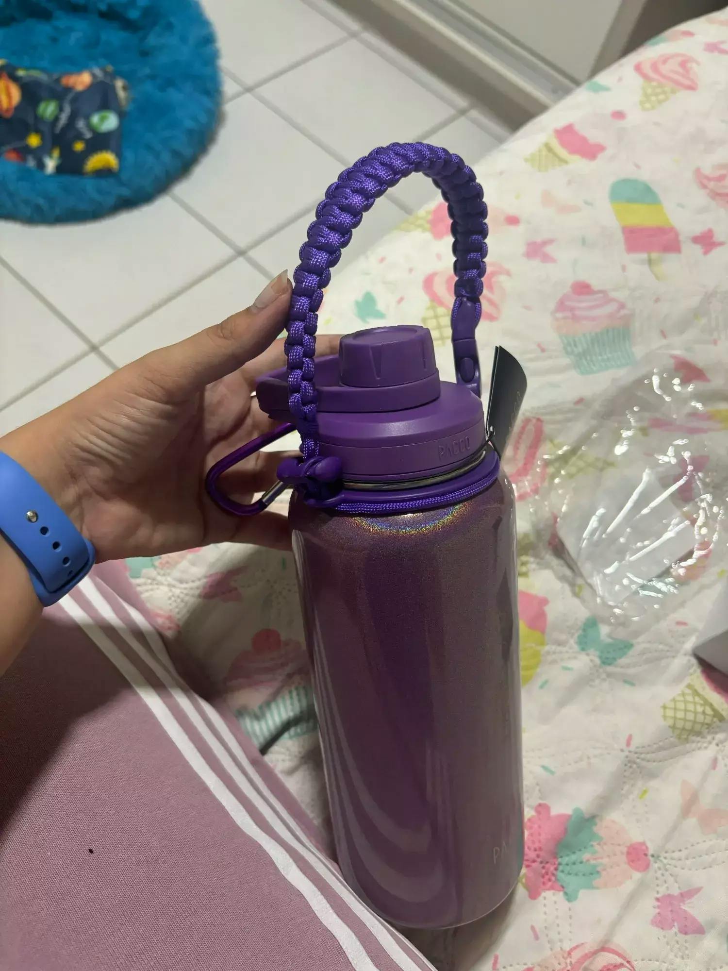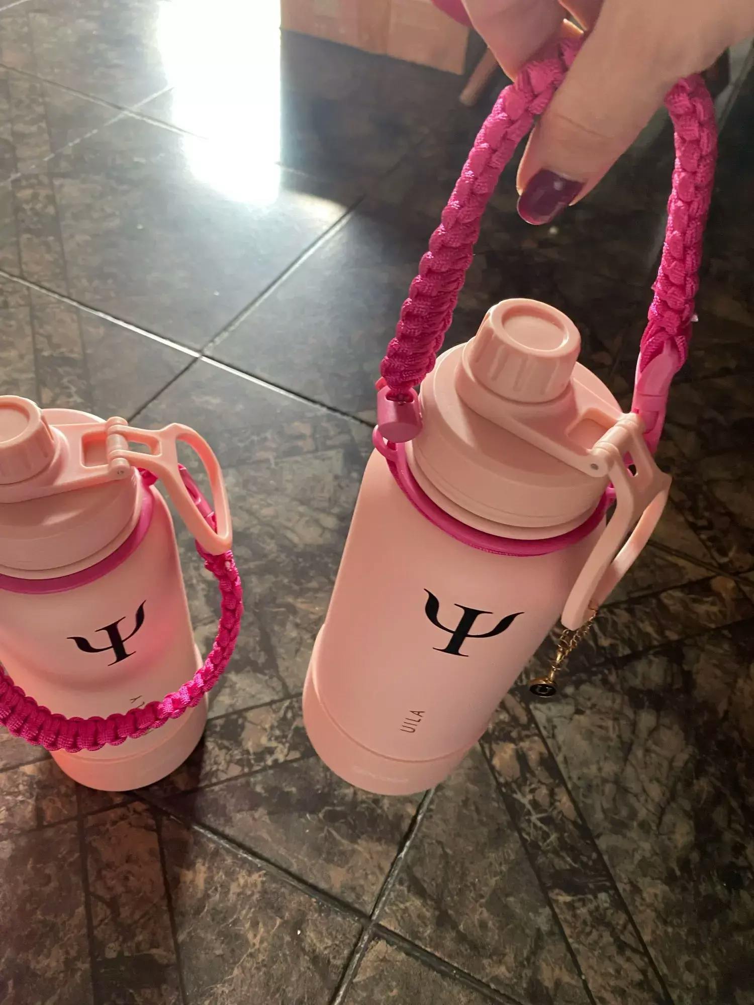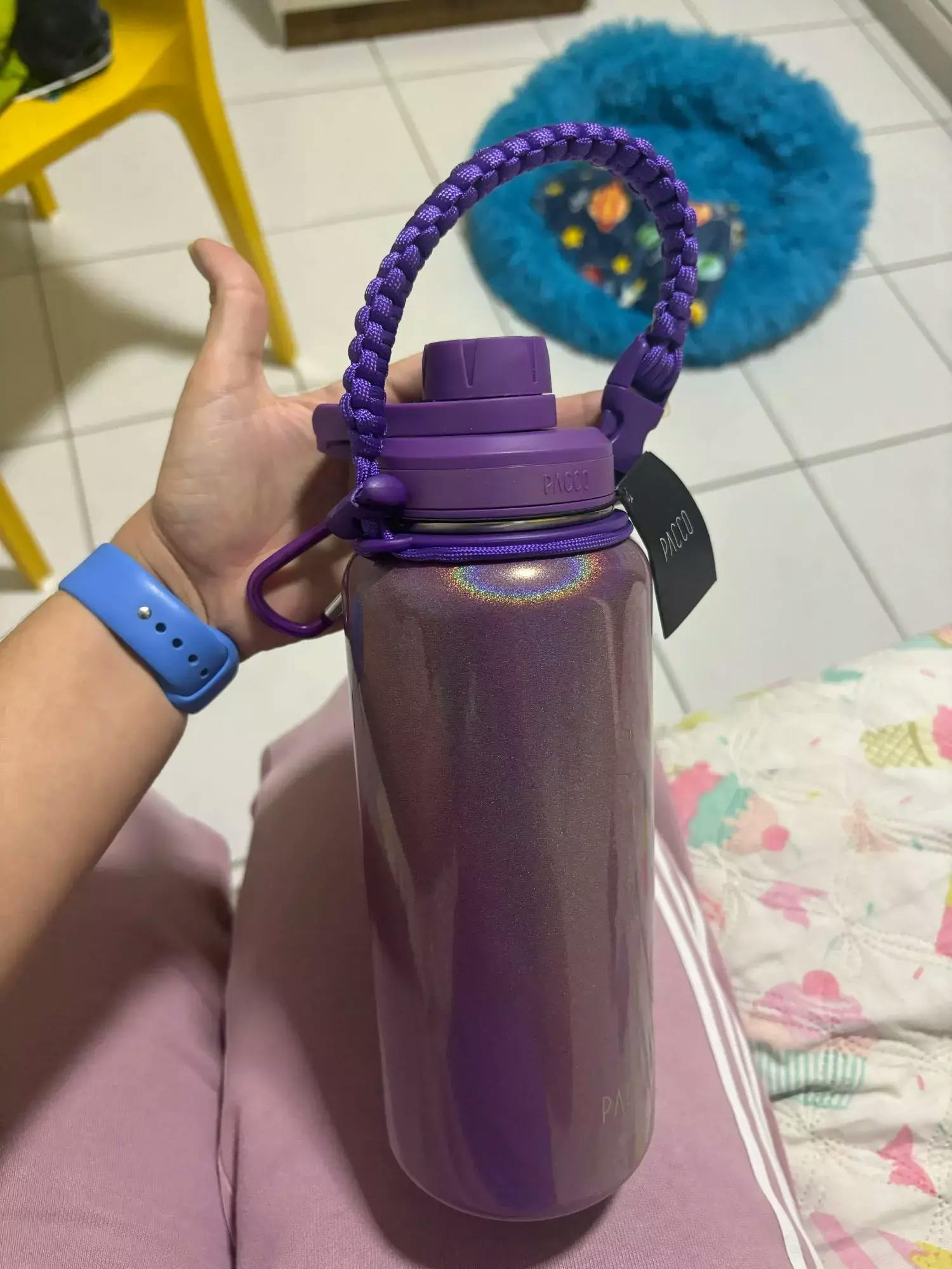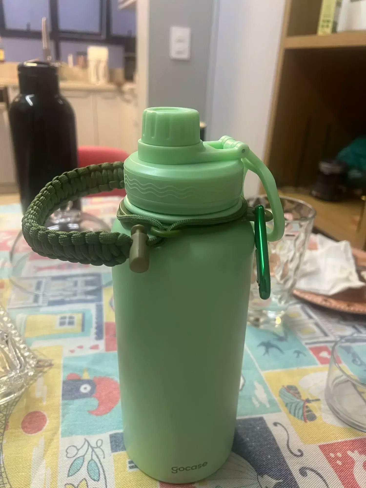 Inspirada em modelos renomados como Hydro Flask, PACCO, Aquaflask e Galaxyflask, a alça é feita com corda naval de alta resistência, sendo leve, durável e moderna.