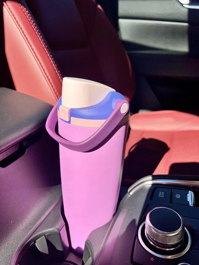Praticidade em cada detalhe: alça confortável, encaixe perfeito em porta-copos e o bico multifuncional 2 em 1 que permite beber do jeito que você quiser — com ou sem canudo.